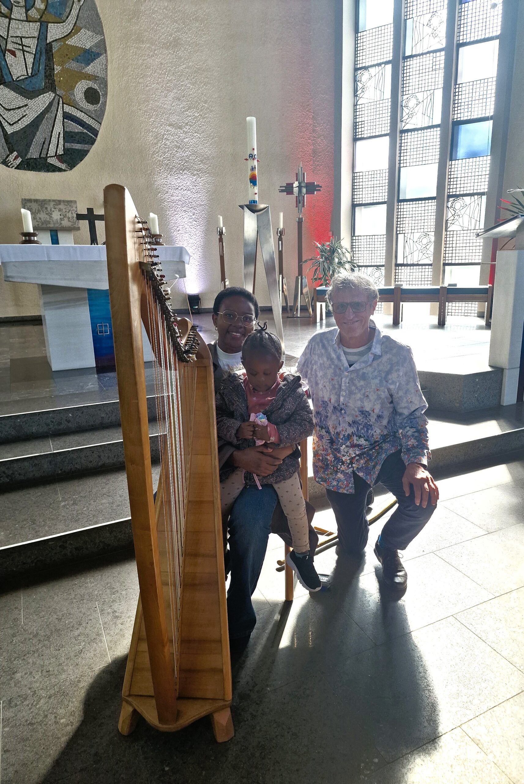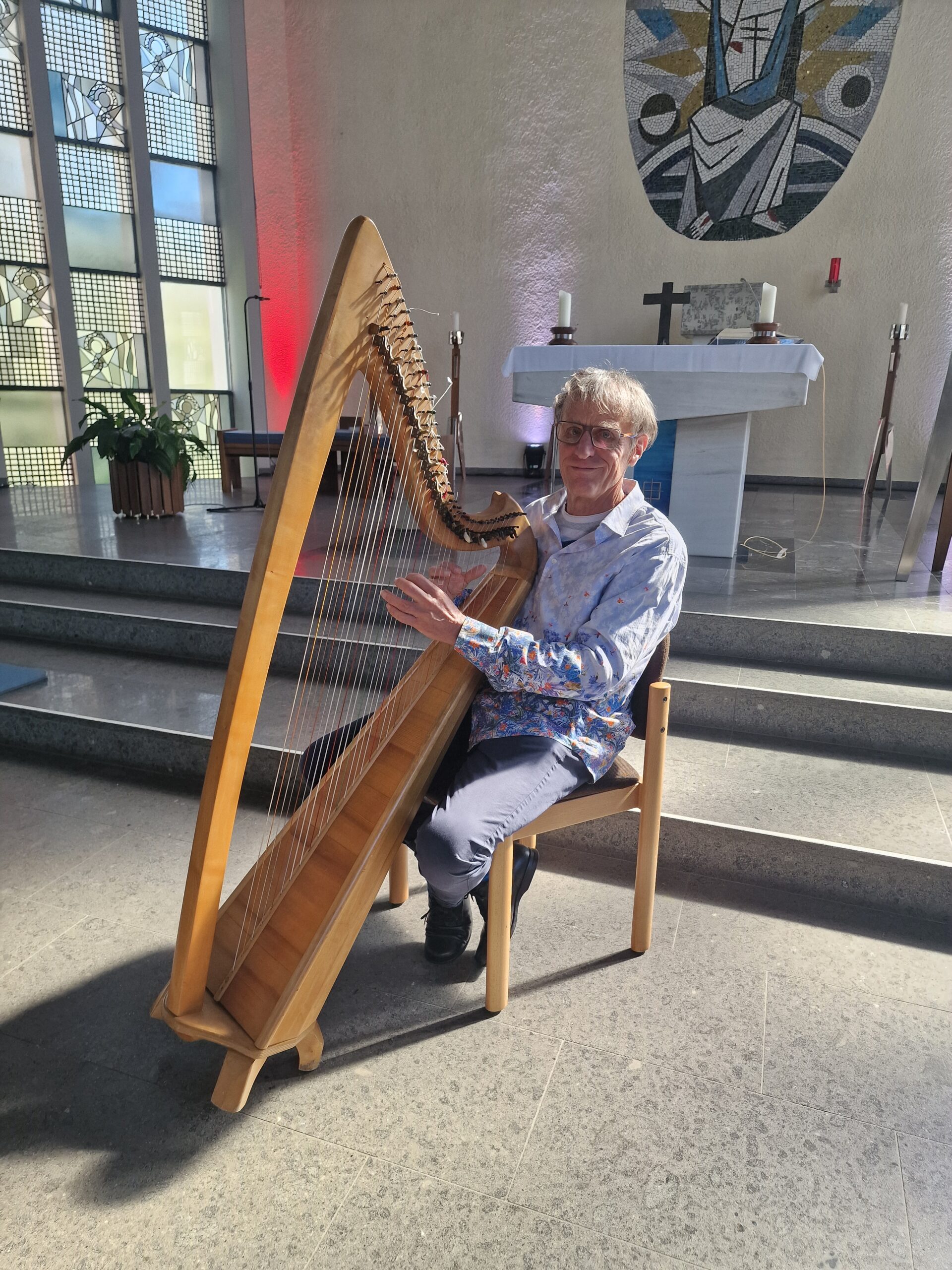 Nach dem Applaus durfte jeder sich an der Harfe selbst ausprobieren und sich vom Künstler das Instrument erklären lassen. Es war eine gelungene Veranstaltung, die leider wegen des schönen Wetters nur wenige Besucher hatte. Diejenigen aber, die den zauberhaften Klängen und Geschichten gelauscht haben und vielleicht selbst einmal die Saiten der Harfe zum Klingen brachten, verließen die Kirche mit ganz neuen Eindrücken.