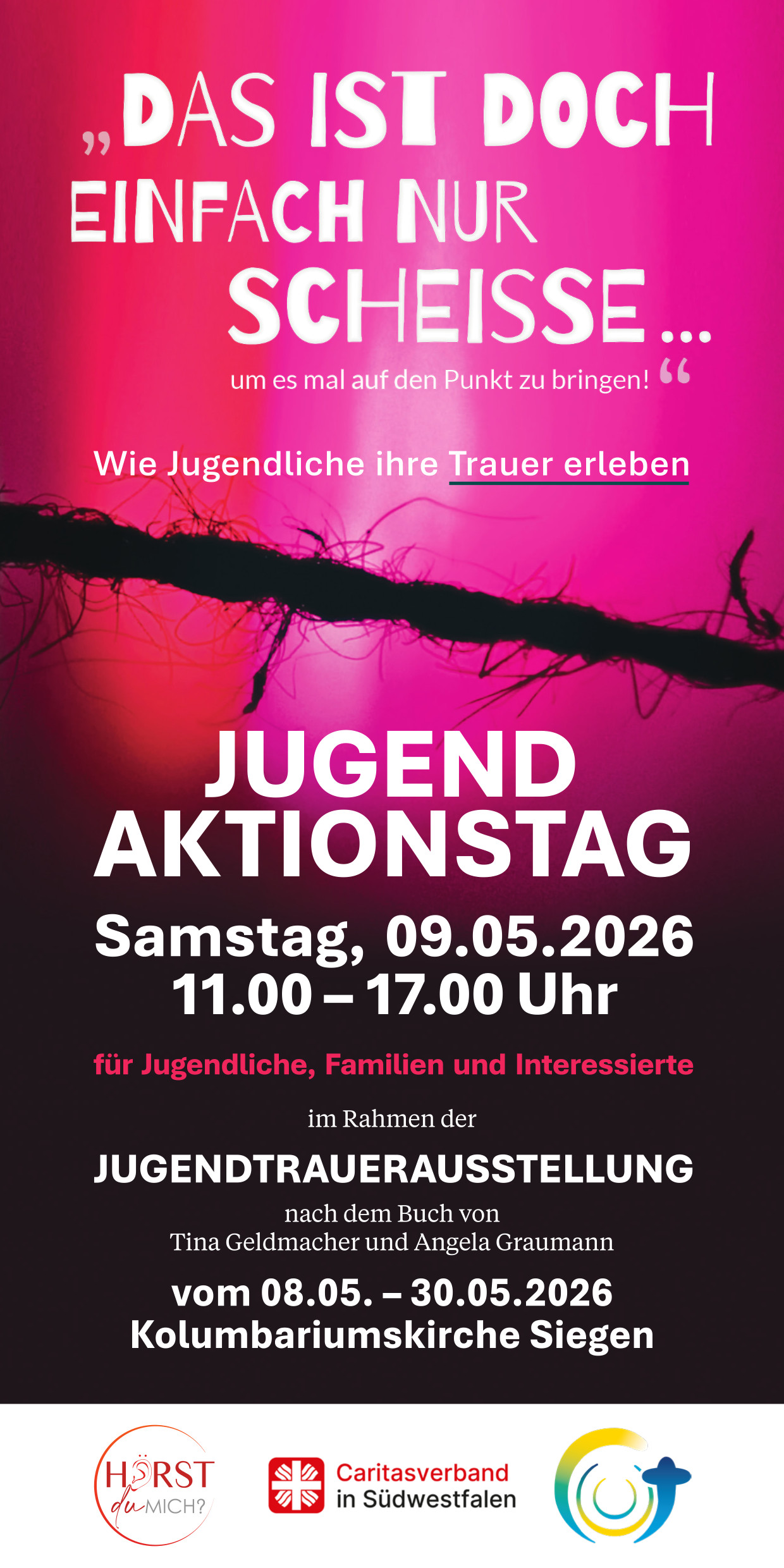- Mai von 11 bis 17 Uhr Jugendaktionstag – mit Jugend-Flohmarkt! Für den Flohmarkt werden Anmeldungen bei „Hörst Du mich?“ erbeten: Tel. 0271/236 02 68;