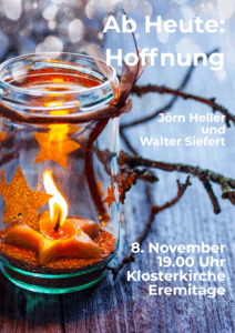 Das Leben besteht aus Überraschungen, und für den, der die richtige Brille auf der Nase hat, längst nicht nur aus bösen. Für den Benediktinermönch David Steindl-Rast ist die Herzensantwort auf das Leben als Überraschung die Hoffnung, und Grund zur Hoffnung gibt es in jedem noch so kleinen Winkel. Der Lyriker Jörn Heller (Siegen) und der Akkordeonist Walter Siefert (Hachenburg) spüren diese unscheinbaren Orte mit Ihnen auf, die durchaus nicht so entlegen sind, wie es es manchmal scheint.