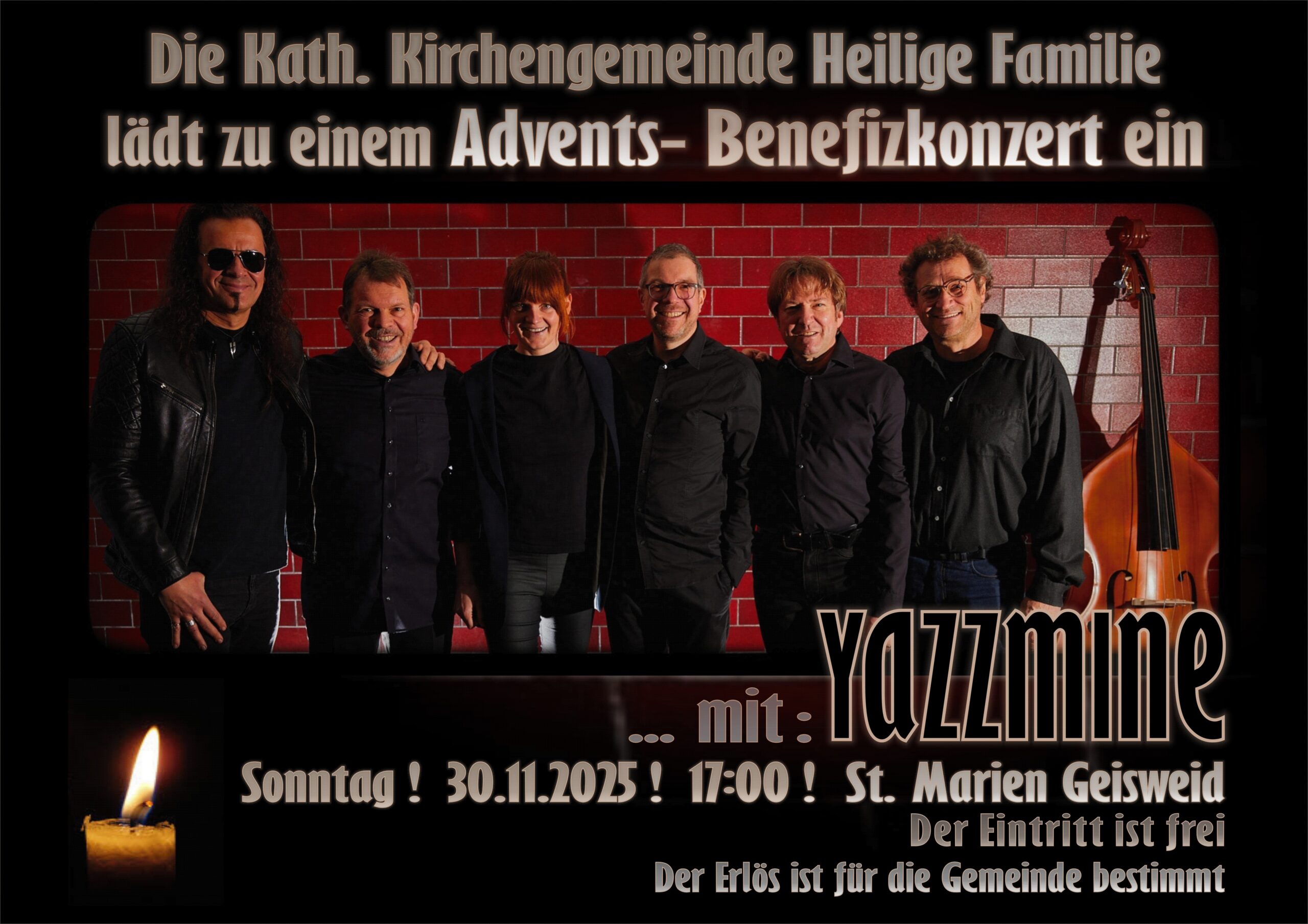 Bereits vor zwei Jahren hat die sechsköpfige Band Yazzmine aus dem Raum Siegen-Wittgenstein mit besonderen Liedern das Publikum auf eine besinnliche Reise mitgenommen.