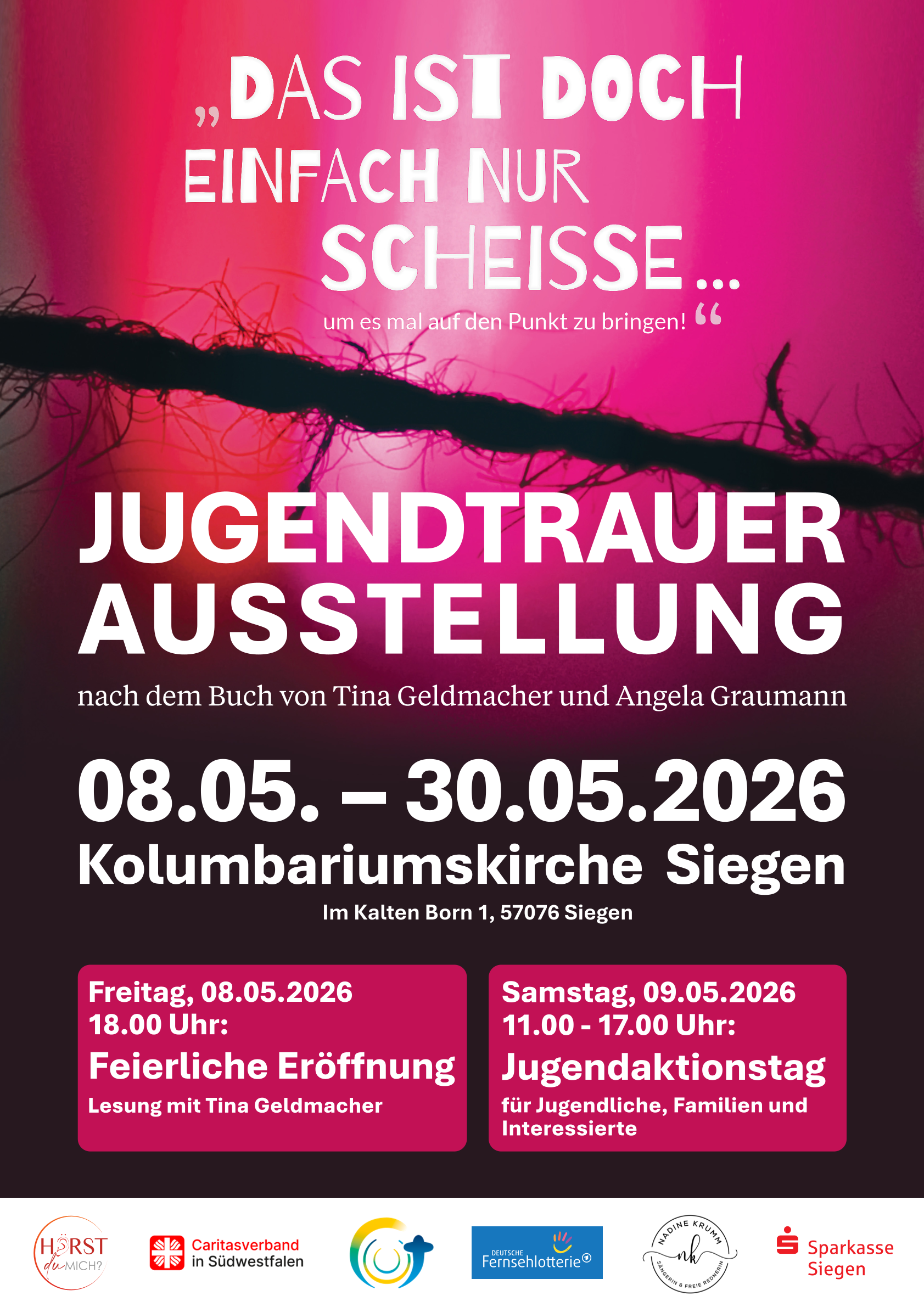Kreis Siegen-Wittgenstein. – Ein Titel, der aufrüttelt, ehrlich ist und genau das ausspricht, was viele junge Menschen fühlen: Vom 08. bis 30. Mai 2026 lädt das Beratungszentrum „Hörst du mich?“ des Caritasverbandes in Südwestfalen e.V. in die Kolumbariumskirche Siegen zu einer außergewöhnlichen Ausstellung ein.