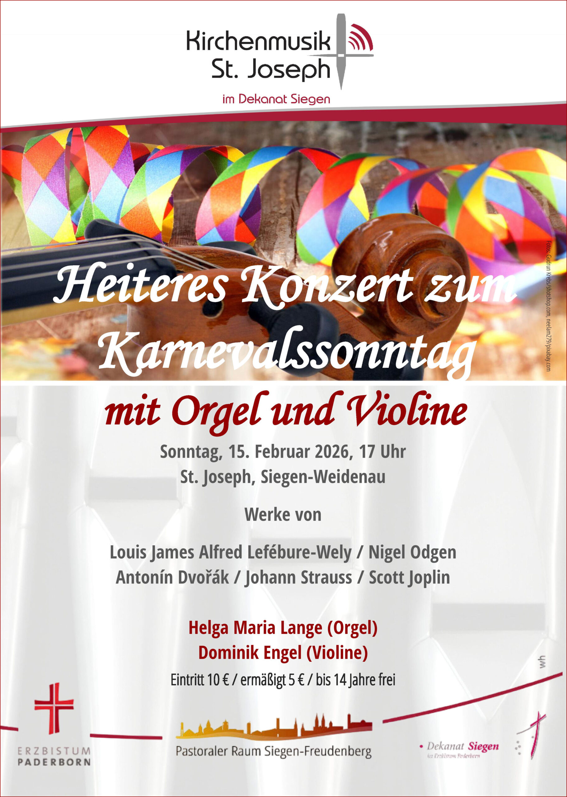 Werken von Louis James Alfred Lefébure-Wely (1817 – 1869), Nigel Odgen (*1958), Antonín Dvořák (1841 – 1904), Johann Strauss (1804 – 1849), Scott Joplin (1867 – 1917) und anderen Komponisten die Zuhörer/innen erheitern und unterhalten. Der Eintritt beträgt 10 €, erm.5 €.