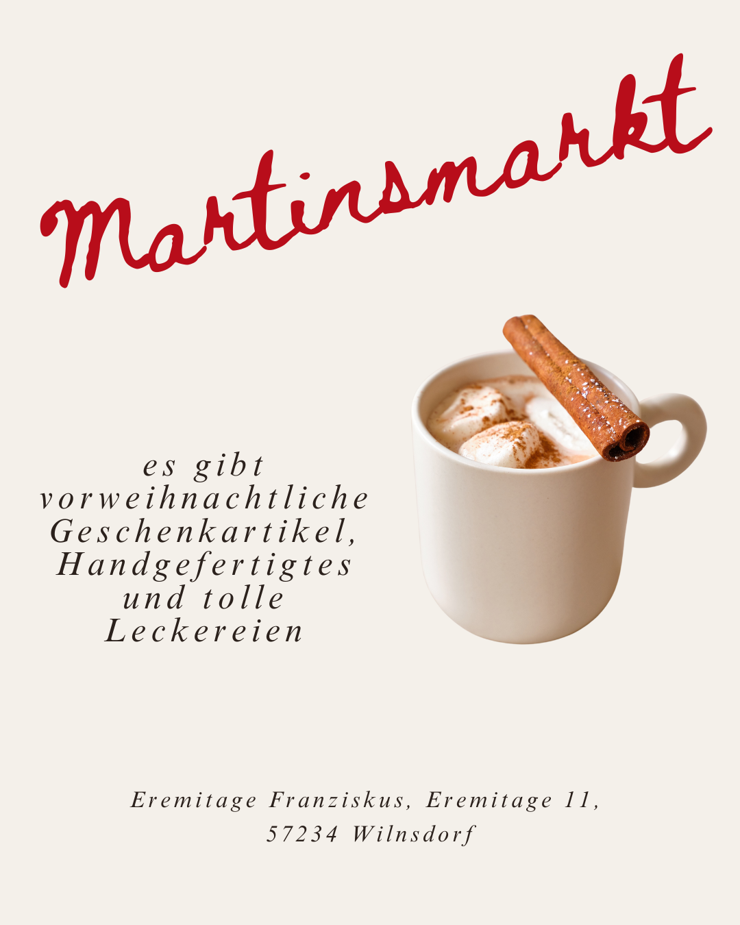 Es ist wieder soweit! Am 8. November glänzt die Eremitage im Licht des beliebten Martinsmarktes. Von 14 Uhr bis 19 Uhr wartet auf Besucherinnen und Besucher im „Gartens der Begegnung“ des Marien-Hospizes „Louise von Marillac“ ein schönes Programm. Vorweihnachtliche Geschenkartikel, Handgefertigtes und natürlich auch verschiedene Leckereien. Wir freuen uns auf Ihr Kommen und einen schönen, gemütlichen Tag mit St. Martin!