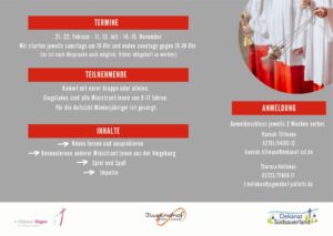 Kommt mit eurer Gruppe oder alleine, denn alle Ministrant:Innen von 9-17 Jahren sind herzlich eingeladen.