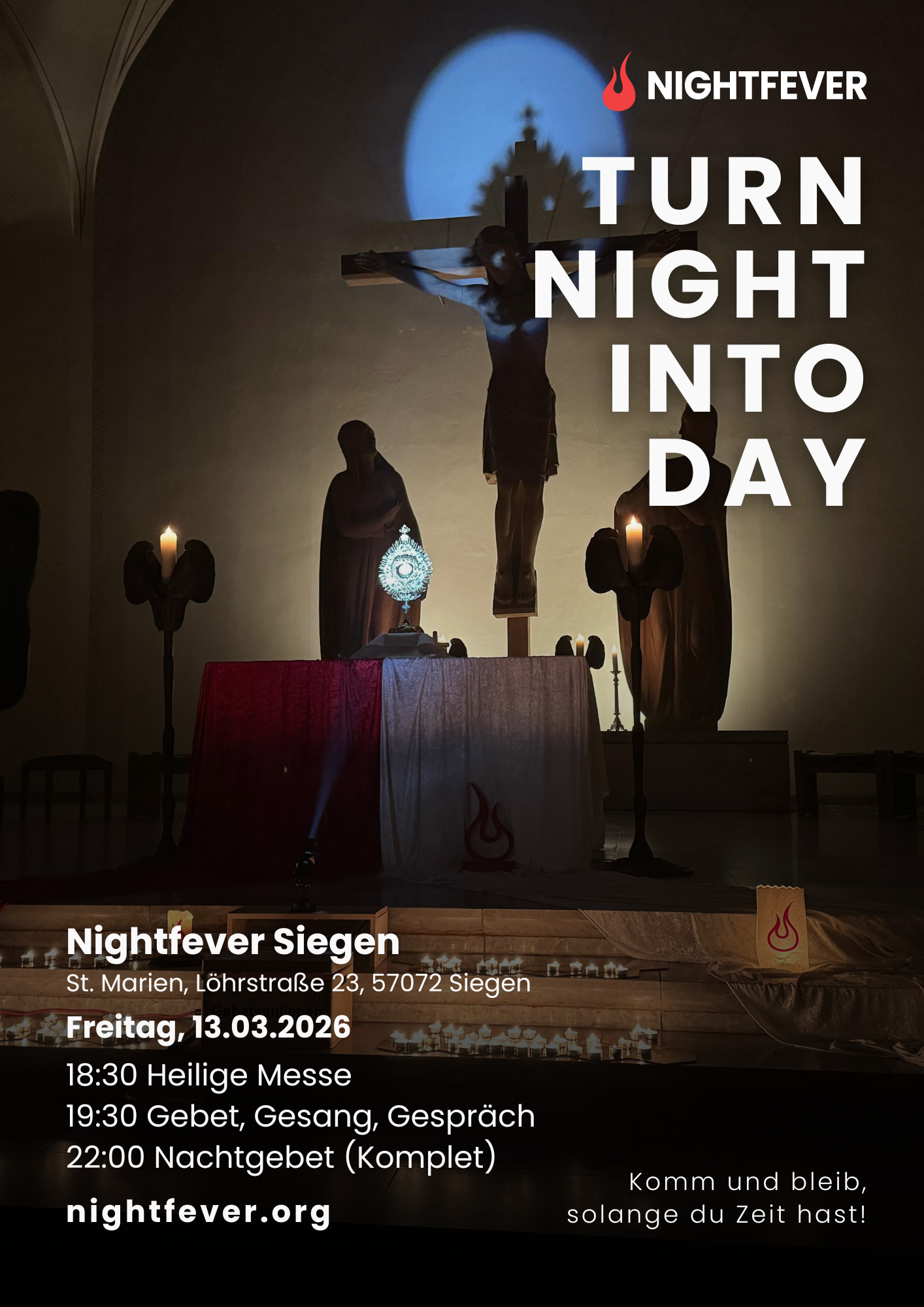 Das erste Nightfever für dieses Jahr findet am 13. März 2026 in der St. Marien Kirche in Siegen statt.